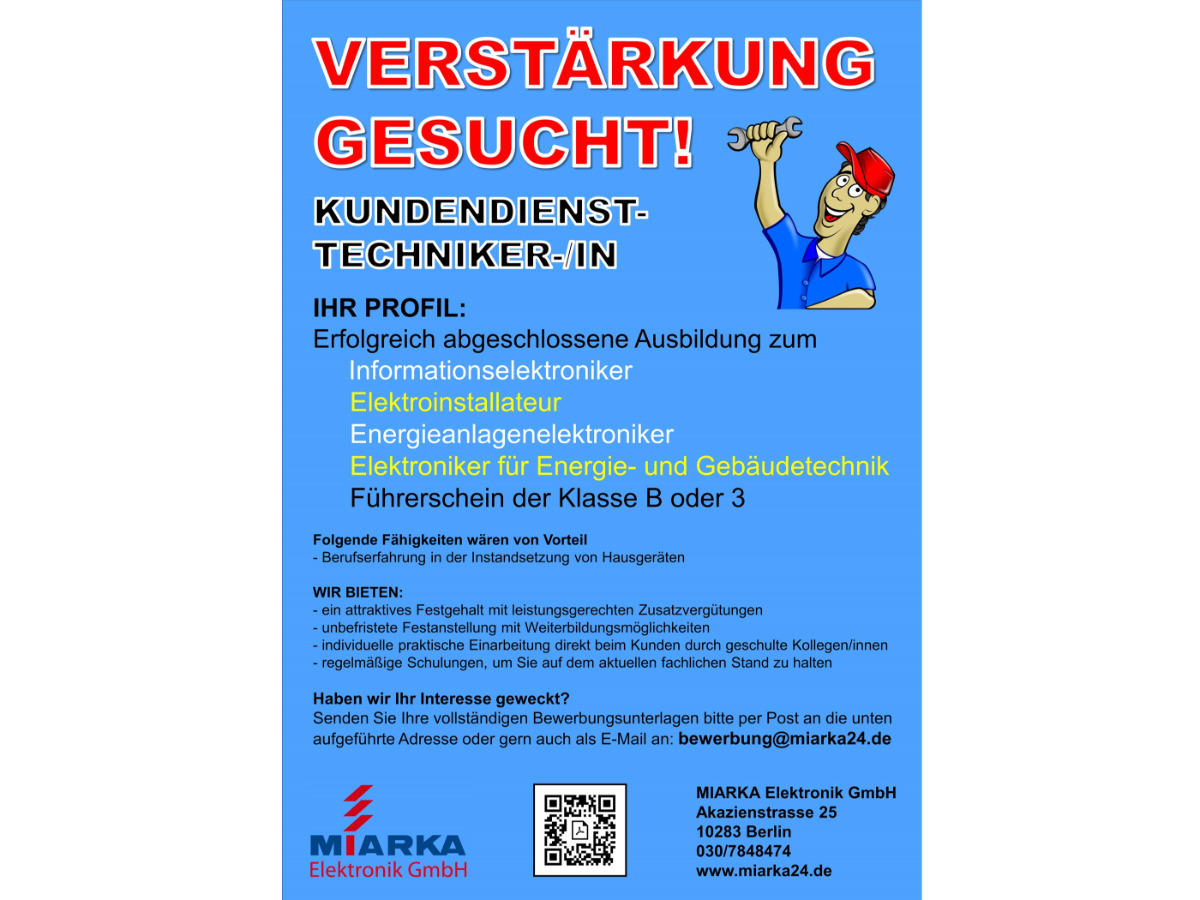einschlägige Berufserfahrung in der Instandsetzung von Hausgeräten wären von Vorteil, sind aber nicht Bedingung